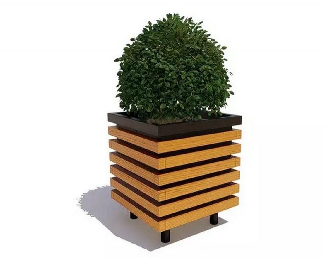 Деревянные вазоны «Аллея» — компактные кубические конструкции для украшения ландшафта. Брусья могут служить опорами для вьющихся растений или ручками при транспортировке. Уникальный брус отличается особенной степенью прочности. Основой служит надежная металлическая емкость с полимерным слоем краски. Дуэт стали с натуральным деревом подойдет любителям экологичности и уюта.
